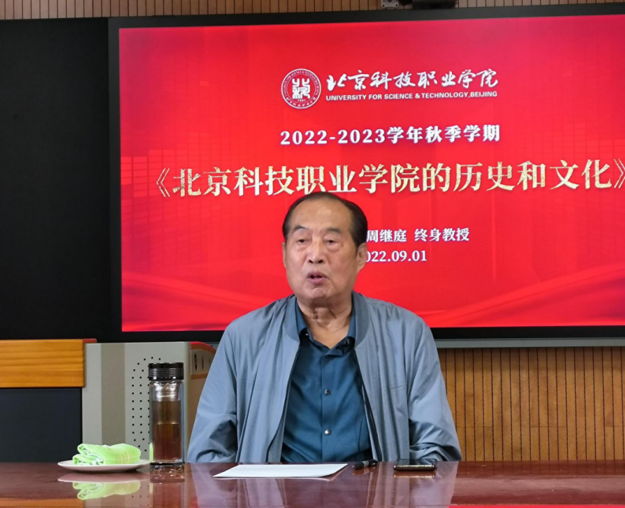 图为周继庭教授为新生讲授“北科文化”