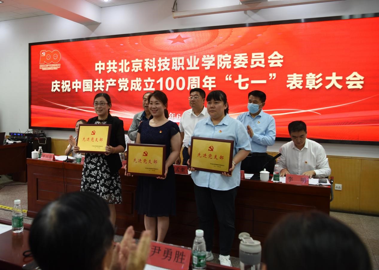 出席会议的校党委书记、理事长、校长周孟奎博士、北科创始人周继庭教授、党委专职副书记陈文合、党委副书记李明、党委副书记罗兴莲为受表彰的优秀共产党员、优秀党务工作者和先进党支部颁发了荣誉证书和奖章。