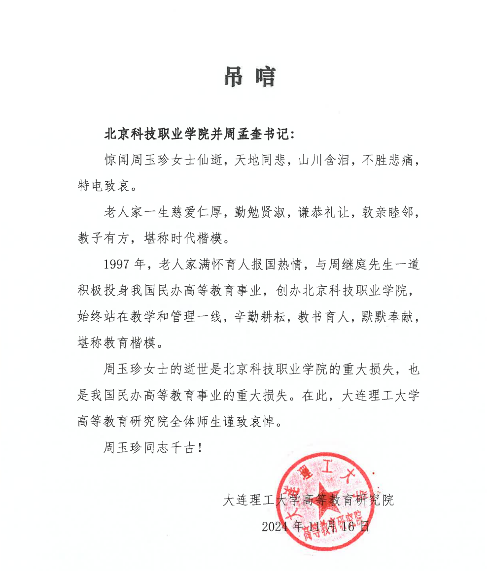 大连理工大学高等教育研究院吊唁